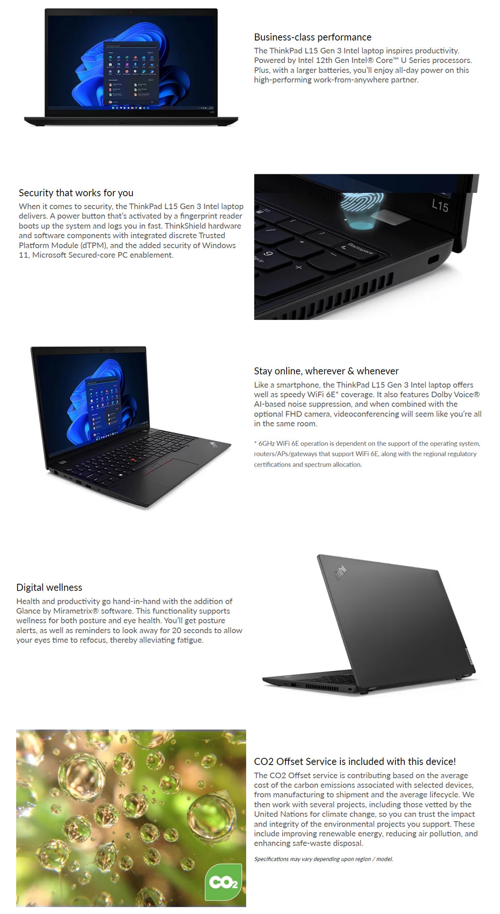 ThinkPad L15 G3, Intel® Core™ i5-1245U vPro® (E-cores up to 3.30GHz, 12MB) 15.6 1920 x 1080 Non-Touch, Windows 11 Pro 64 (preinstalled with Windows 10 Pro 64 Downgrade), 8.0GB, 1x256GB SSD M.2 2242 PCIe Gen4 TLC Opal, Intel® Iris® Xe Graphics, BT 5.1 or above,Intel®AX211vPro, Wired Ethernet, 720P HD, 3 Cell Li-Pol 42Wh, 1CourierCarryin,Black with Number Pad-English (US)